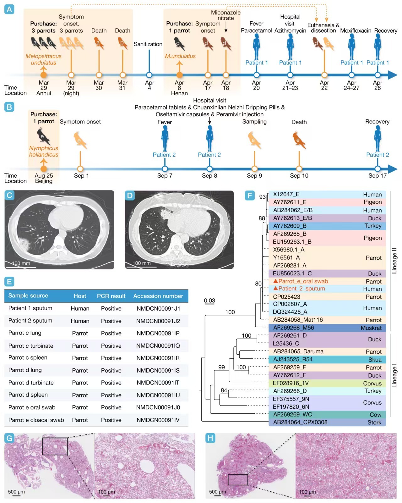 今年3月,中国科学院微生物研究所与航空总医院发布论文,介绍了北京两例因感染鹦鹉热发生肺炎的女性病例,两人在出现症状前均购买了宠物鹦鹉,这些鹦鹉到家后不久便出现了精神萎靡、羽毛蓬松、呼吸困难等症状,并最终死亡;今年2月,安徽一男子购入4只鹦鹉当宠物,随后3只莫名死亡,家人也陆续出现发热等症状。